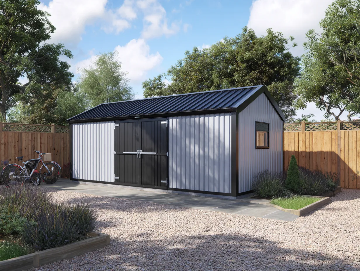Capanno da giardino in metallo progettato per offrire uno spazio pratico e protetto per l’organizzazione dell’area esterna. La struttura in pannelli di metallo zincato con tetto a falda garantisce resistenza agli agenti atmosferici e favorisce il deflusso dell’acqua piovana. La doppia porta anteriore permette un accesso agevole anche per oggetti voluminosi. Fornito in pannelli con montaggio semplice, è adatto per giardini e cortili privati.