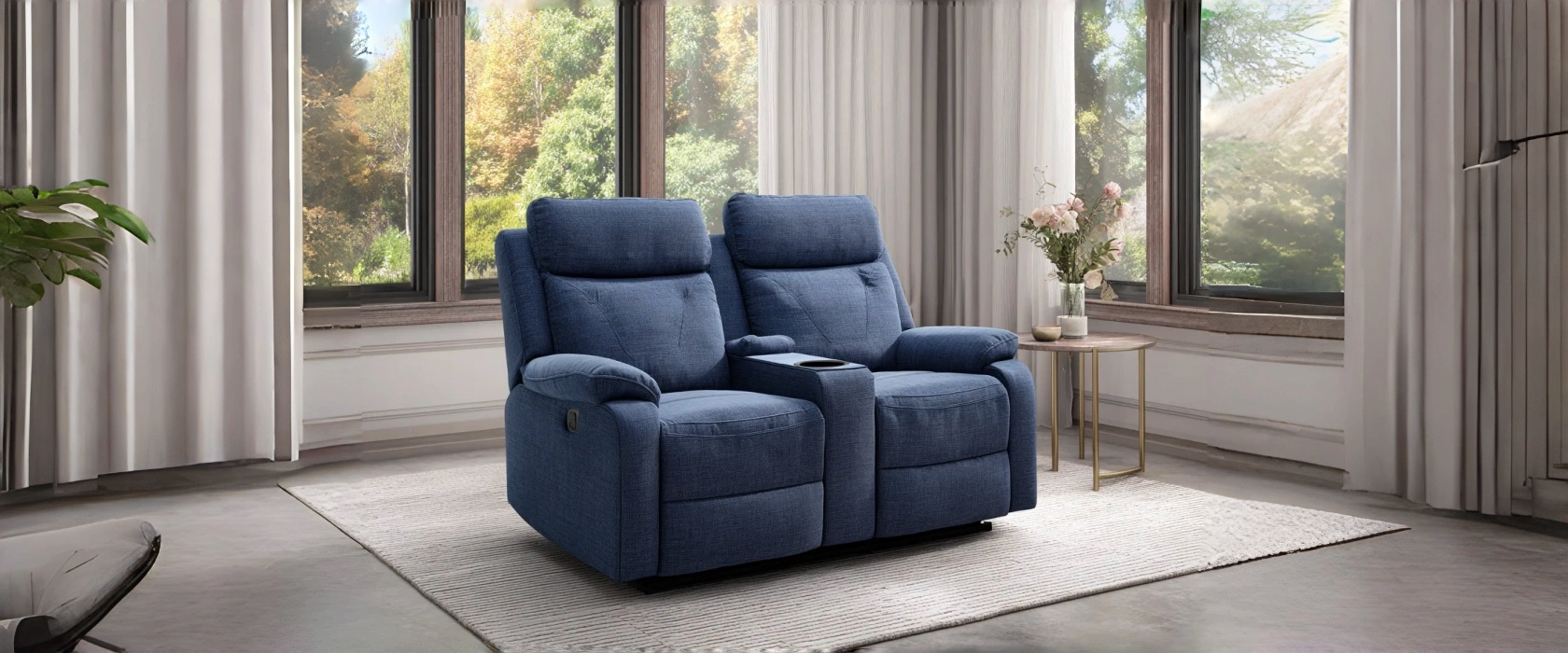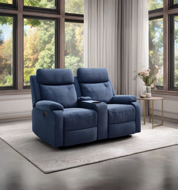 Divano relax 2 posti in tessuto 168x98x108 cm - blu scuro - per soggiorno - seduta ergonomica con reclinazione integrata